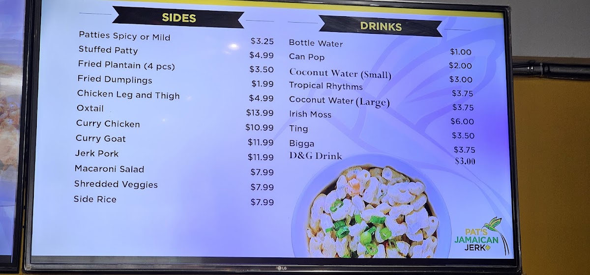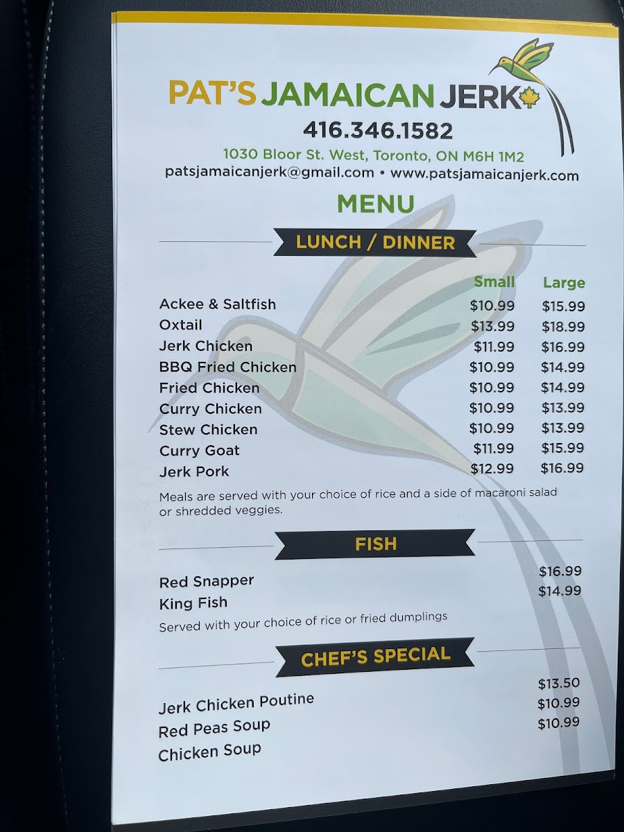 Pat's Jamaican Jerk Menu