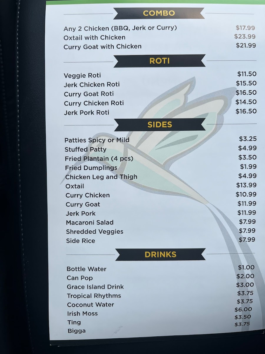 The menu features signature items like jerk chicken, curry goat, and oxtail, alongside classic sides such as fried plantain and macaroni salad. These dishes are designed to be enjoyed at a leisurely pace, whether you’re stopping by for a satisfying solo meal or sharing a combo platter with friends.